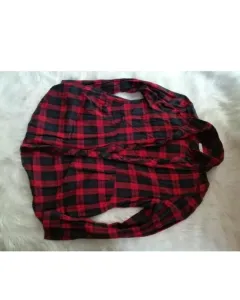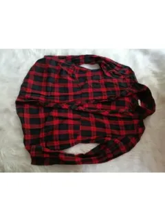 Camisa manga larga de cuadros negro con rojo holgada de la cintura para abajo. La tela es gruesa