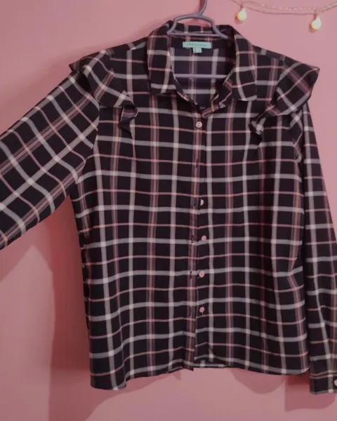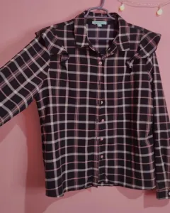 Camisa de cuadros manga larga en color rosita y azul obscuro, es de tela delgada y fresca talla L.