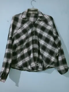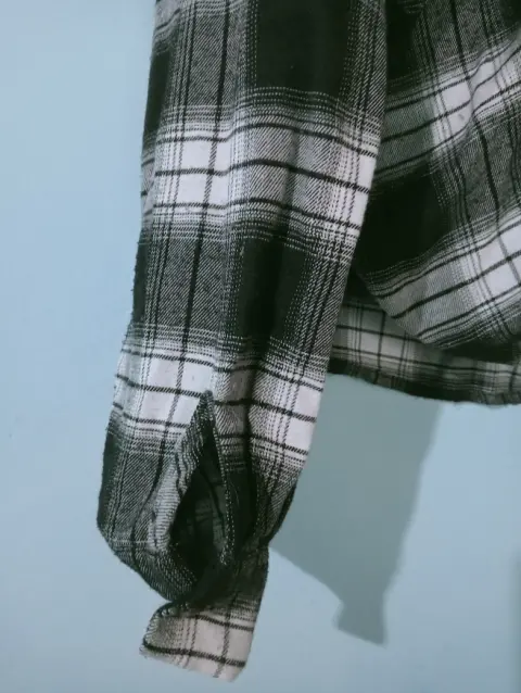 Camisa de cuadros, de color blanco, gris y negro de manga larga y abotonada Talla S EU 36 US 4Shein