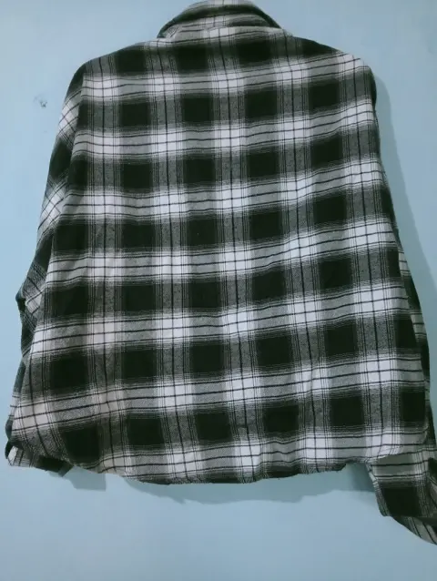 Camisa de cuadros. Camisa de cuadros, de color blanco, gris y negro de manga larga y abotonada Talla S EU 36 US 4Shein