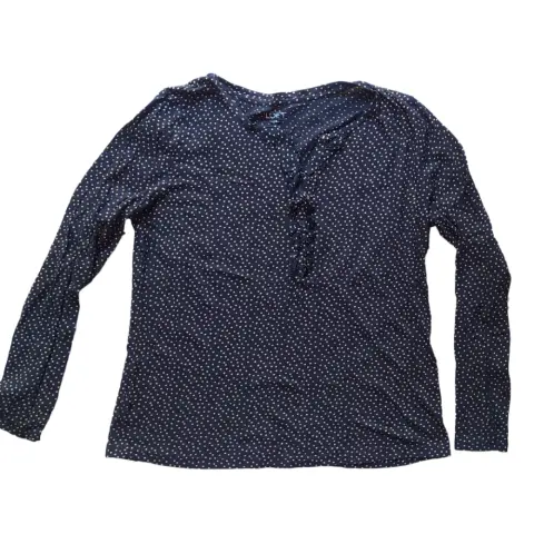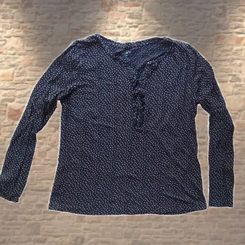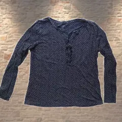 Camisa de manga larga con lunares amarillos. Camisa negra con lunares amarillos, marca Loft talla L, con botones al centro. 100% algodón.Hombro a hombro 40 cm.Axila a axila 50 cm.Largo total 60 cm.Si te gusta otra prenda, puedo hacerte un paquete y mejorar el precio.