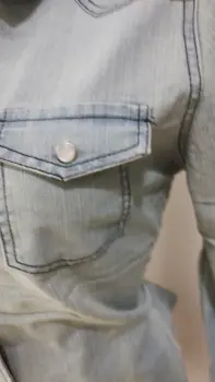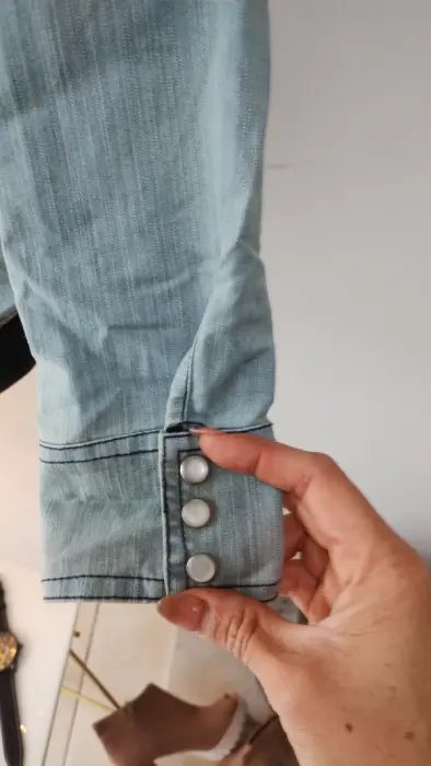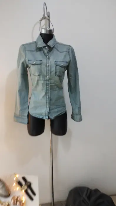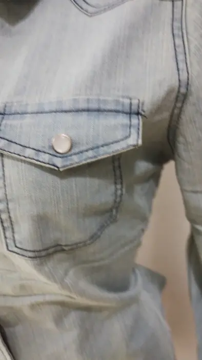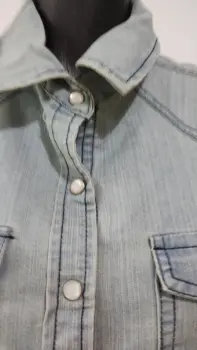 Camisa de mezclillaNueva Con botones de presiónCosturas en tono obscuroDiseño vaqueroCon etiquetaBolsas frontales