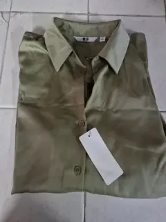 Camisa de seda. Hermosa camisa de vestir para dama tipo seda en color verde olivo