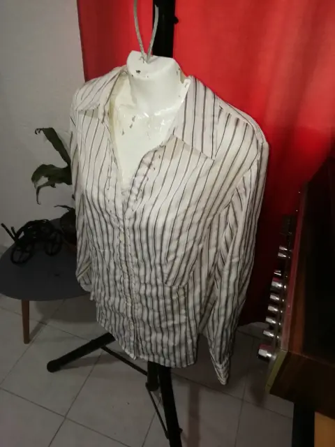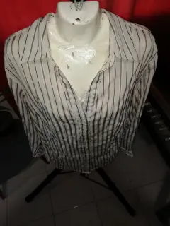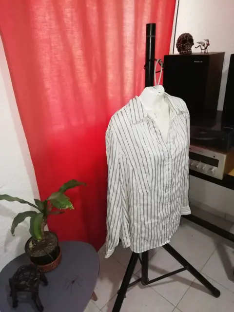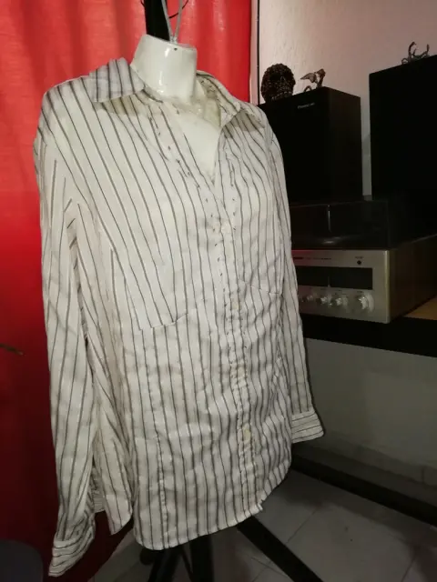 Elegante camisa con líneas verticales en café, plata y negro super elegante. Para la oficina, no puede faltar en tu guardarropa 💅😻✨✨