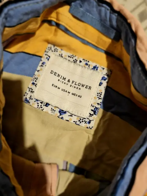Hermosa camisa marca Denim & Flower, para hombre, dice talla mediana pero da un chico sin problema.