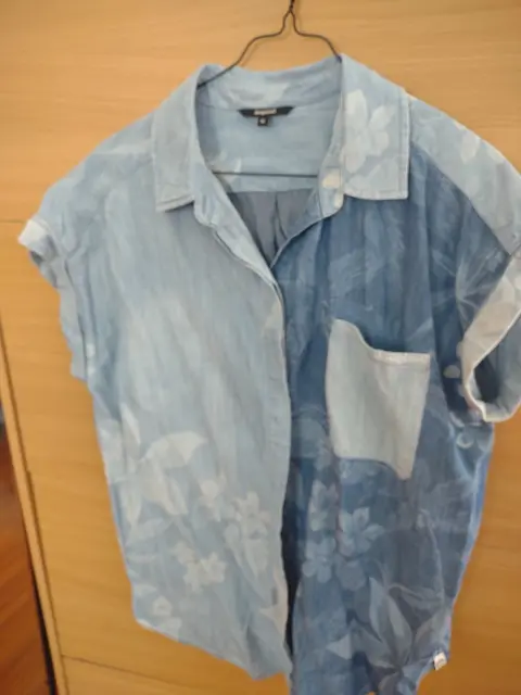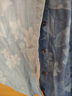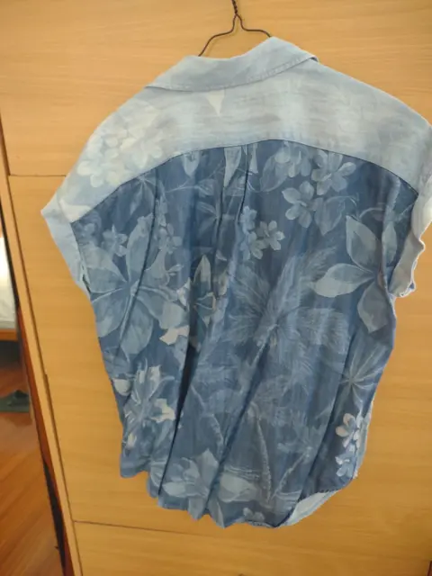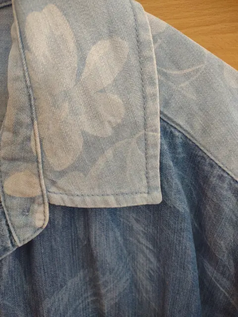Camisa casual de mezclilla en tonos azul con detalle de flores.