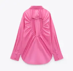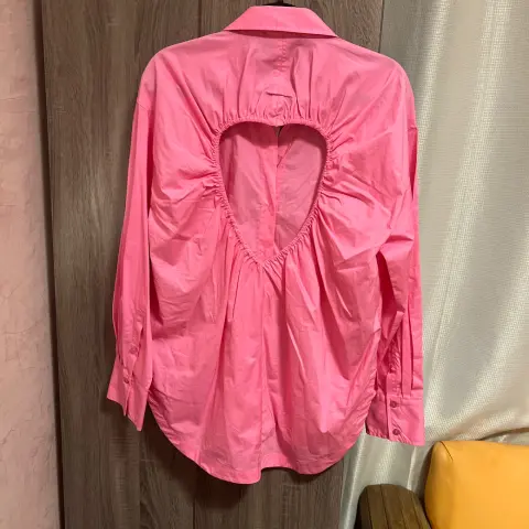 Hermosa camisa en tela popelin con escote en espalda corazón nueva con etiquetas color rosa chicle talla L