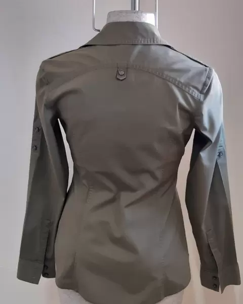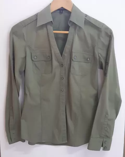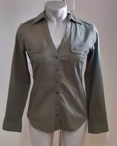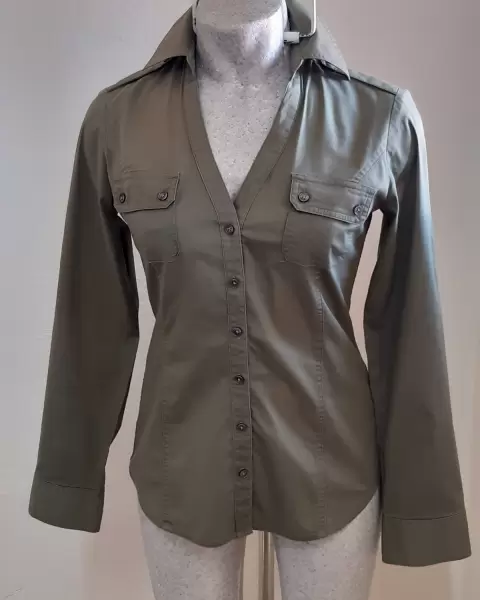 Bonita camisa marca Express, talla XS, color verde militar muy de moda, de muy buena calidad