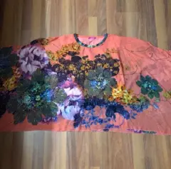 Camisa floral con transparencias. Camisa floral con transparencias, manga 3/4, color salmón, talla mediana, con blusa interior de tirantes corta