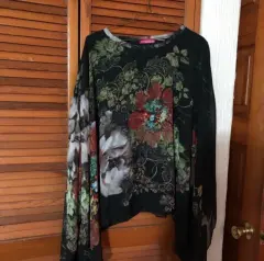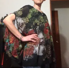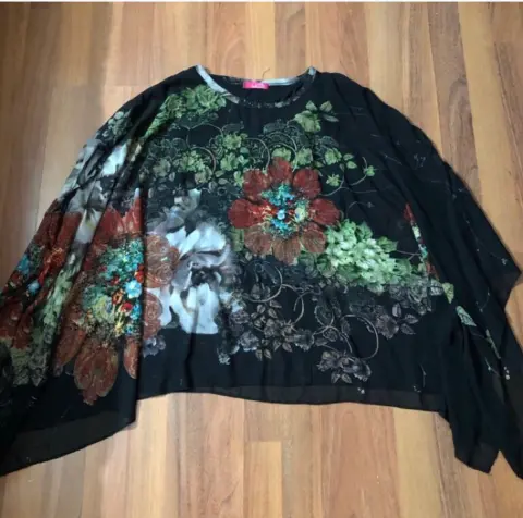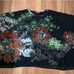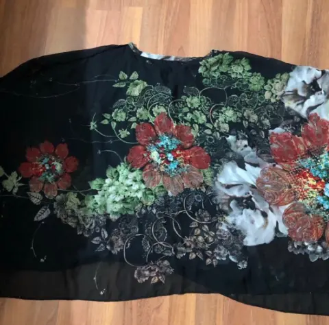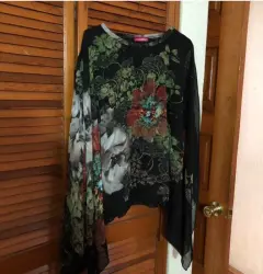 Camisa floral con transparencias negra. Camisa floral con transparencias, manga 3/4, color negra, talla mediana, con blusa interior de tirantes corta