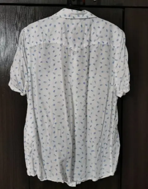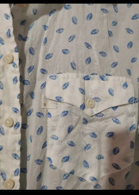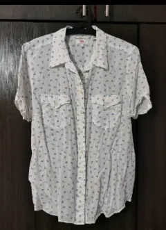 Camisa de la marca Levi's talla M, es blanca con diseño de hojitas azules, es classic fit ajusta bien al cuerpo. Super fresca.