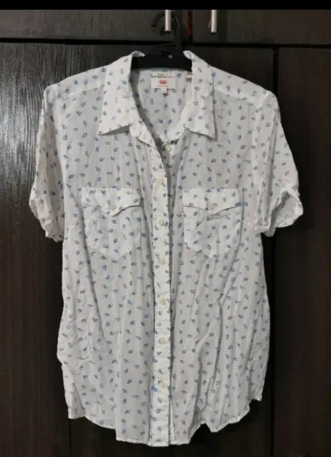Camisa Levi's Original. Camisa de la marca Levi's talla M, es blanca con diseño de hojitas azules, es classic fit ajusta bien al cuerpo. Super fresca.