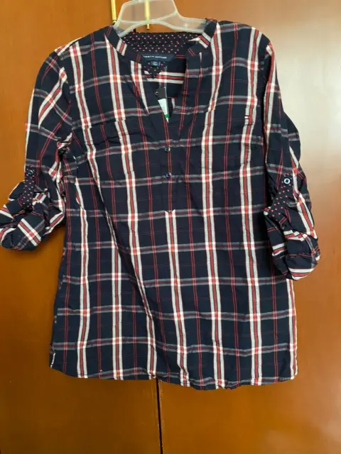 Camisa ligera casual. Camisa manga larga con opción a 3/4 llega abajo de la cintura talla L nueva con etiqueta