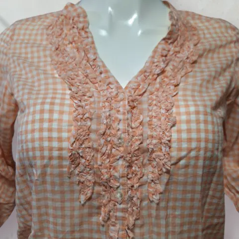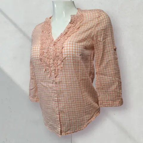 Camisa Manga 3/4 Estampado de Cuadros, tela fresca y ligera 100% algodón, con botones para abrochar en brazo, es XS pero también queda a S Medidas De axila a axila 45cm, largo 64cm