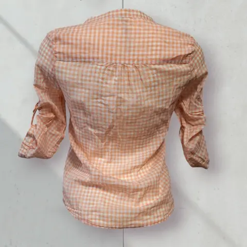 Camisa Manga 3/4 Estampado de Cuadros. Camisa Manga 3/4 Estampado de Cuadros, tela fresca y ligera 100% algodón, con botones para abrochar en brazo, es XS pero también queda a S Medidas De axila a axila 45cm, largo 64cm
