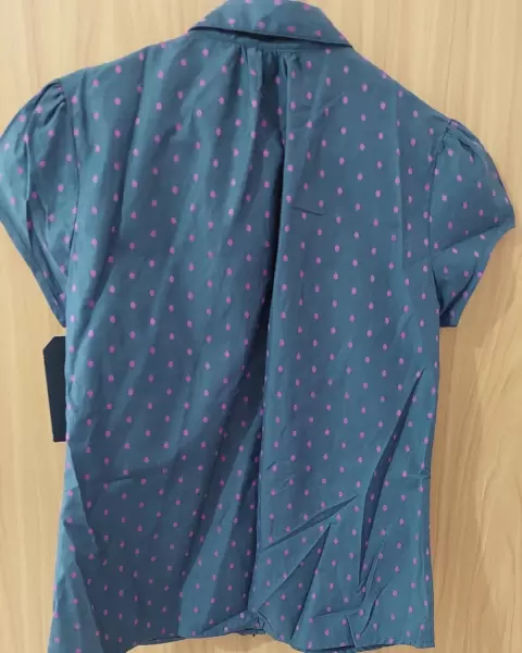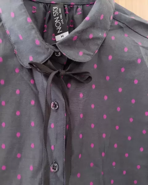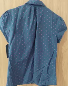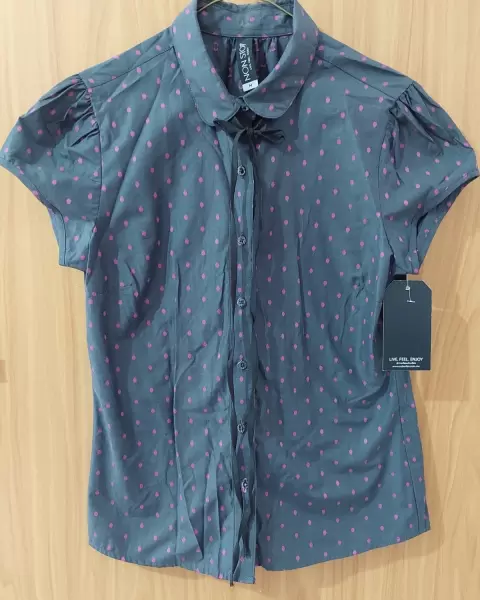 Camisa manga corta, color negro con motitas de color morado, es nueva con etiqueta