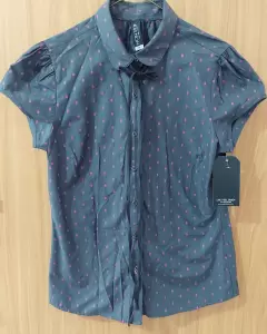 Camisa manga corta. Camisa manga corta, color negro con motitas de color morado, es nueva con etiqueta