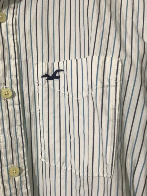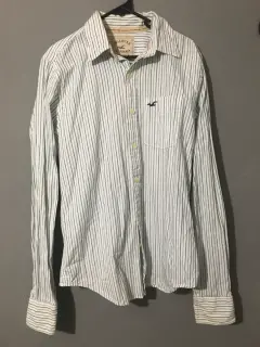 Camisa de manga larga Color blanco con rayas azules Sin detallesMarca Hollister Talla M