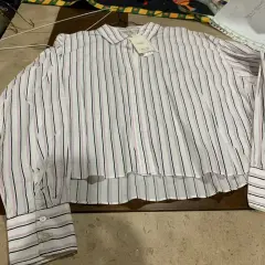 Bonita camisa corta y ancha talla L Mango, ideal para andar relax 😎, puedes usarla con Jeans o con un pantalón amplio se ver súper cool ! Totalmente nueva Medidas axila 61, contorno cintura corta 62 largo frente 49, largo espalda 62, Largo mangas 56. Acepto ofertas razonables ya que la prenda está totalmente nueva.