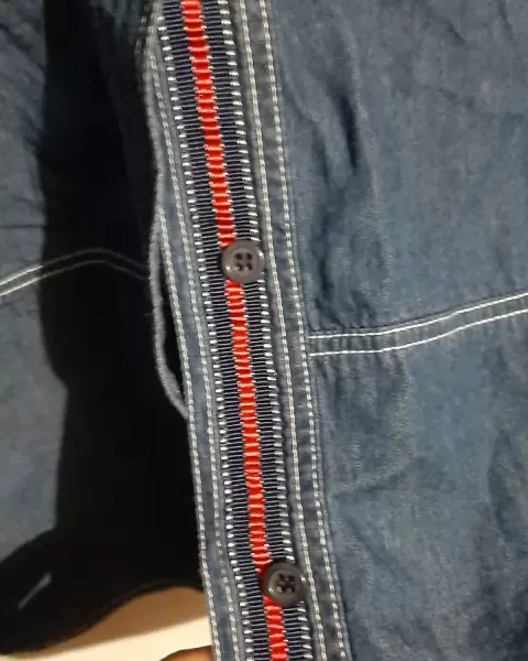 Camisa ligera mezclilla con grecas blancas detalle rojo en botones con abertura a los lados puede usarse cerrada o abierta como camisola manga larga nuevecita , se va a un superprecio