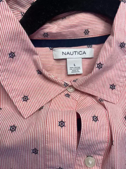 Camisa Nautica. Talla: L ( queda también a M)Largo: 68 cmAncho: 48 cm(Las medidas son de un solo lado)Queda pegadita para L