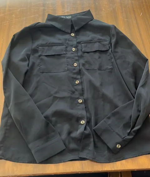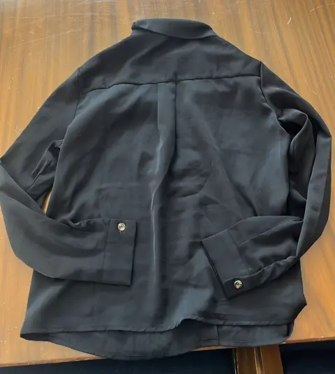 Camisa negra. La tela de la camisa es fresca y delgada no tiene ningún detalle y no transparenta.