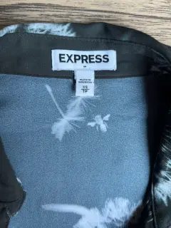 Camisa negra Express. Hermosa camisa de la marca Express color negra con detalles de flor Manga larga con botones para poder hacer manga 3/4 43cm de axila a axila Puesta una sola vez