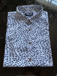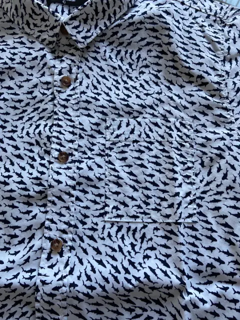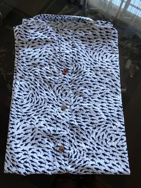 Camisa niño. Camisa para Niño manga corta talla G, marca Hang Ten con tiburones en azul marino.