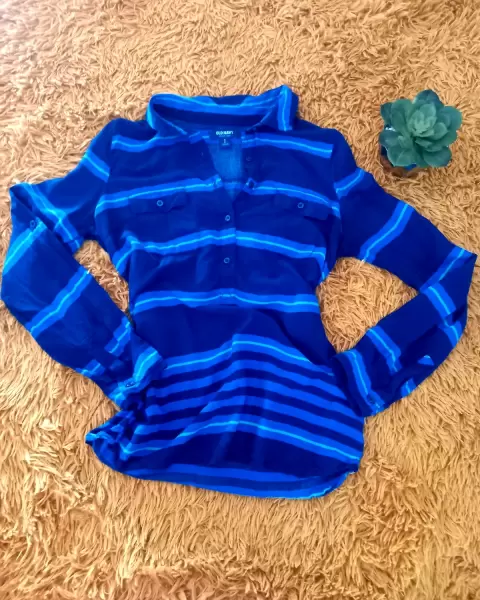 Camisa marca Old Navy, talla S, excelente estado, color azul con franjas verdes, super fresca y linda