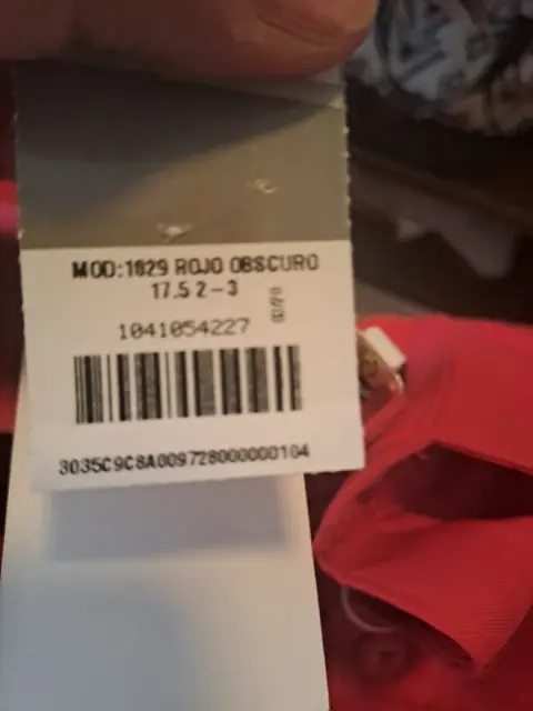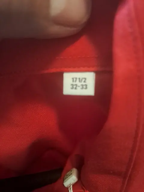 Talla 32-33 (17.5) colo rojo medidas de axila a axila 63 cm. De lo largo 77 cm. Mangas 60 cm. De hombros 54 cm. Nueva con sus etiquetas, envío en caja recicladaTalla