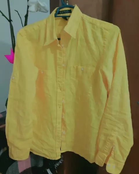 Bonita camisa 👌ralp lauren amarilla💛 manga larga, logos bordados 💅line exclusive es talla s pero queda bien a M yo soy M, anexo foto.esta la foto.