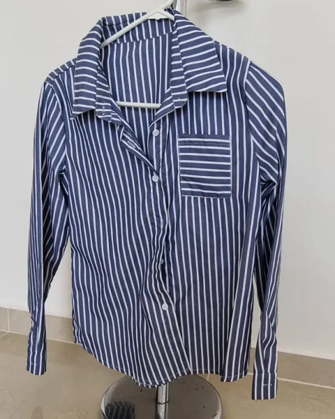 Camisa rayas. Camisa rayas verticales azul con blanco. Manga larga.