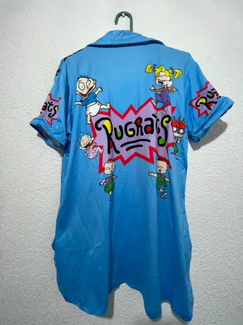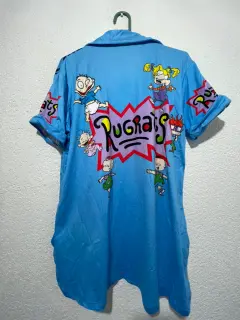 Camisa Rugrats. Camisa azul estampada con personajes de Rugrats, talla grande manga corta