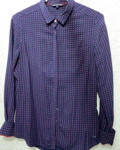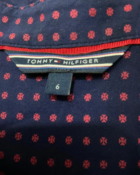 Camisa Tommy Hilfiger. Camisa Azul marino con florecitas en rosa, manga larga , botón oculto, en los puños tiene detalles en rosa q se ven padres. En perfectas condiciones. Talla 6