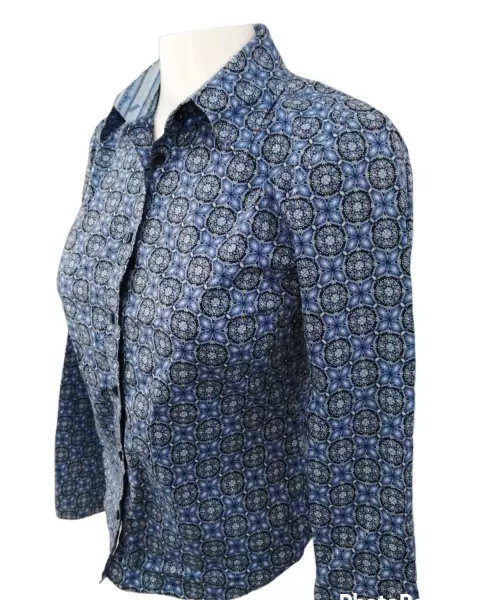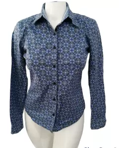 Camisa de manga larga, en diferentes tonos azules y blanco, los botones vienes grabados con la marca.Talla en etiqueta SMedidas en plano 📍✔️Hombro a hombro 37 cmAxila a axila 46 cmLargo 60 cm