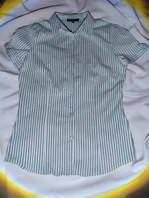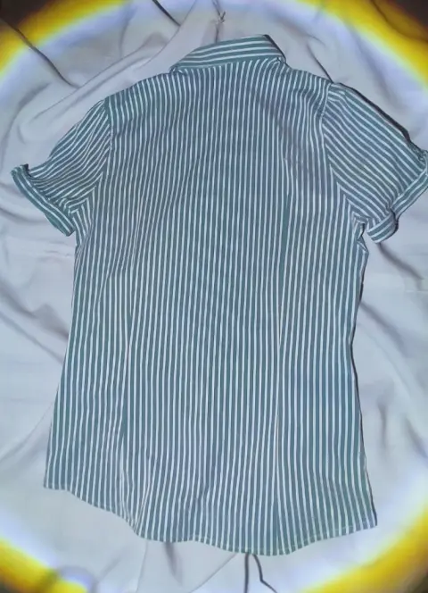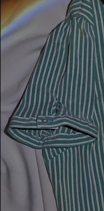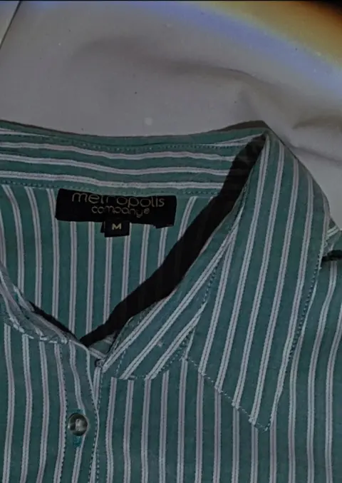 Camisa verde. Camisa Verde Rayas Verticales,🧷Hombro caido, Manga Corta, 🧷Botones Delanteros , Se Ajusta al Cuerpo🏷️Talla M🌞🌈Medidas >>>🖇️Largo Camisa / 60 cm🖇️Largo de Manga / 18 cm🖇️Cintura / 86 cm🖇️Pecho / 94 cm🖇️Hombro / 38 cm