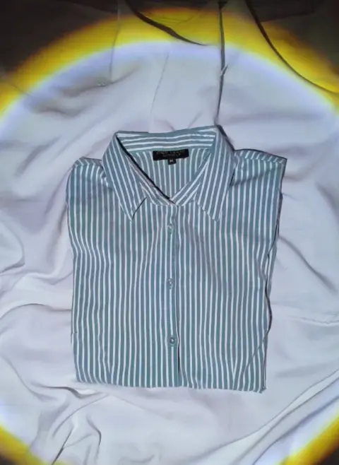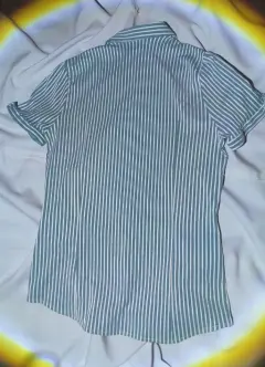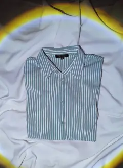 Camisa Verde Rayas Verticales,🧷Hombro caido, Manga Corta, 🧷Botones Delanteros , Se Ajusta al Cuerpo🏷️Talla M🌞🌈Medidas >>>🖇️Largo Camisa / 60 cm🖇️Largo de Manga / 18 cm🖇️Cintura / 86 cm🖇️Pecho / 94 cm🖇️Hombro / 38 cm