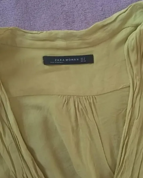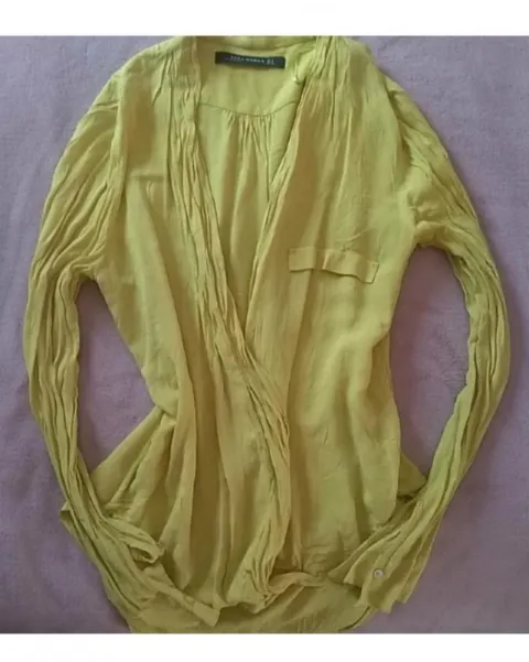 CAMISA ZARA. Hermosa camisa amarilla solo una puesta con manga larga, abierta con escote en V preciosa para uso formal o casual.•SE ACEPTAN OFERTAS•PRECIO NEGOCIABLE ✨