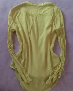 Hermosa camisa amarilla solo una puesta con manga larga, abierta con escote en V preciosa para uso formal o casual.•SE ACEPTAN OFERTAS•PRECIO NEGOCIABLE ✨