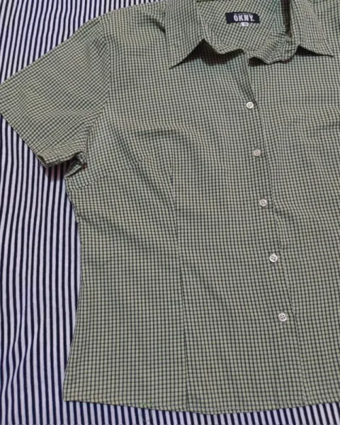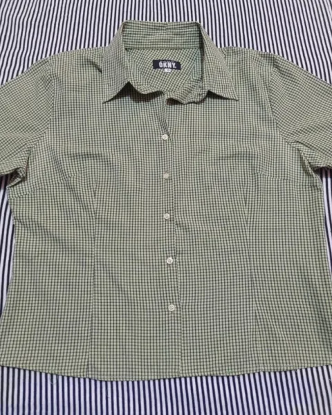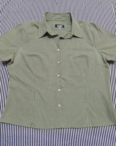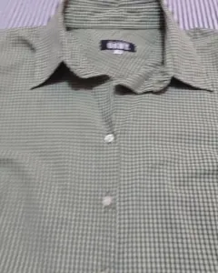 Blusa camisera con pinzas, estampado de minicuadritos negros fondo verde manzana.Hombro: 45 cmBusto: 120 cmCintura: 104 cmCadera: 110 cmLargo: 60 cmLa blusa es usada, no rota, no manchada. ♻️ Nuestros empaques van en cajas/sobres reciclados ♻️