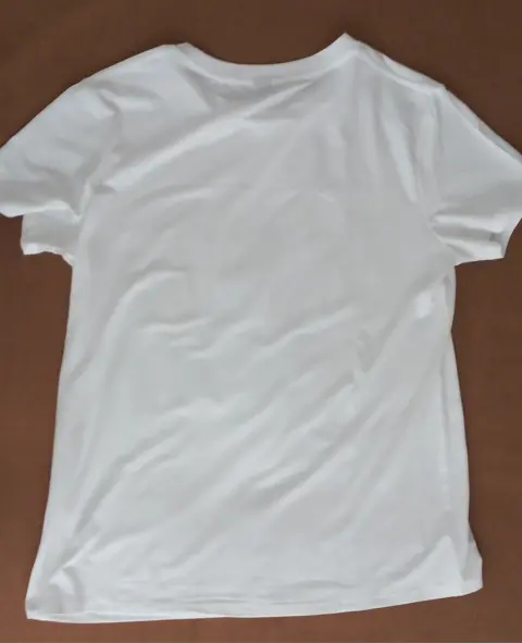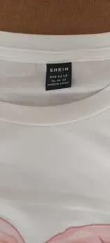 Camiseta blanca con estampado.. Camiseta blanca con estampado en la parte de enfrente la figura es un moño de color rosa.