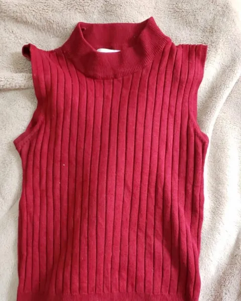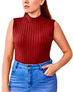 Camiseta canalé sin mangas cuello alto. Lindo diseño, un básico que no puede faltar en tú closet