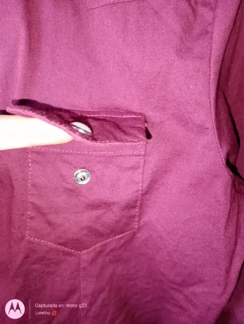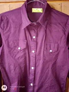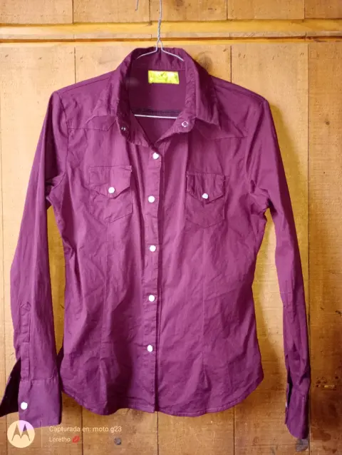 Camisola para Dama T-S. Linda camisola para Dama tipo vaquera en color guinda/vino, tela suave con strech, botones de presión, en excelente estado