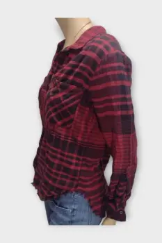 Cloth & Stone Camisa Algodón Rojo XS. Cloth & Stone Camisa Dama Algodón Rojo XSCamisa marca Cloth & Fitch en algodón roja y rayas negrasMarca: Cloth & StoneOrigen: IndiaMaterial: algodónTalla: XSEstilo: CasualPatrón: EscocesColor: Rojo y Rayas NegrasCierre: BotónPecho: 51 cmLargo: 65 cmHombro: 40 cm Manga: 58 cmRopa de USO en muy buen estado