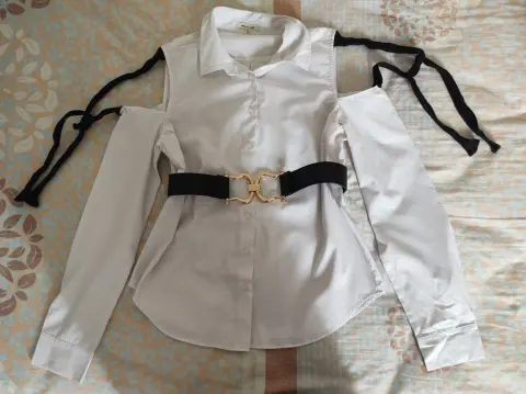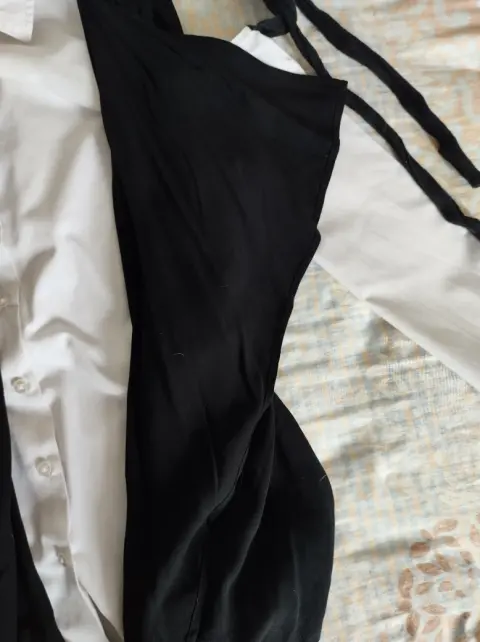 Conjunto chaleco y camisa de vestir. Conjunto de chaleco Nonstop y camisa de cuello, transparenta, sin hombros y con listones.negros para amarrar. Al chaleco le puedes poner cinturón
