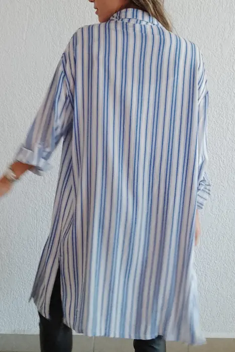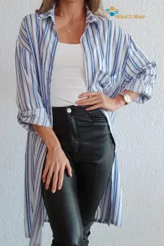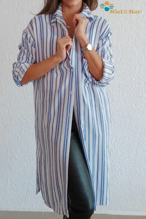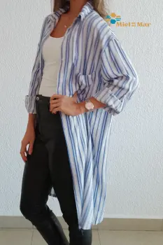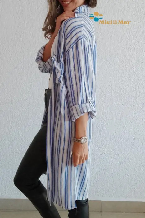 Kimono Blue Stripes. El Kimono Blue Stripes de MielenmiMar es la prenda ideal para quienes buscan un toque de elegancia y comodidad en su vestuario. Confeccionado en rayón, este kimono presenta un diseño de rayas que aporta un aire moderno y sofisticado, perfecto para la temporada de otoño/invierno 2024. Su modelo unitalla se adapta a diferentes tipos de cuerpo, brindando versatilidad y estilo a cualquier outfit.
