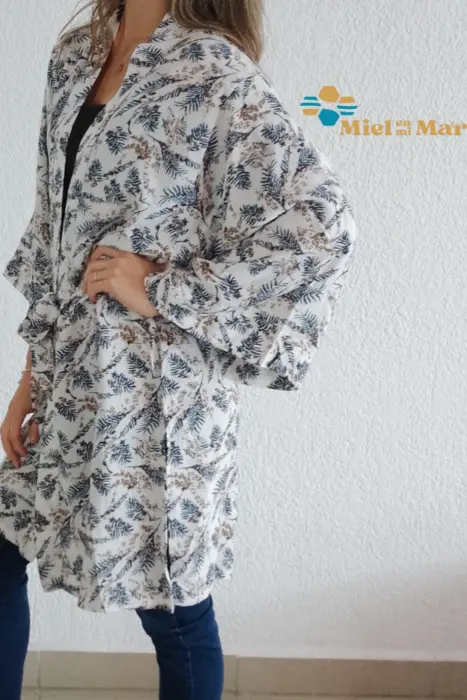 Kimono Floral Azul. El Kimono Floreado Unitalla de MielenmiMar, es la prenda ideal para quienes buscan un toque de elegancia y comodidad en su vestuario. Diseñado especialmente para mujeres, este kimono se adapta a diversas ocasiones, desde un día casual hasta una salida nocturna. La unidad de talla asegura que se ajuste a diversas siluetas, brindando libertad de movimiento y confort.Ideal para usar sobre un conjunto de ropa casual o para complementar un look más sofisticado, el Kimono de algodón es una opción que no puede faltar. Su diseño atemporal y su color discreto lo convierten en una pieza clave para quienes desean destacar con sutileza y estilo. Aporta un toque de calidez y originalidad a tu vestuario, permitiéndote expresar tu personalidad en cada ocasión.