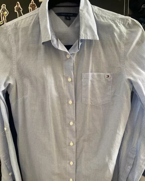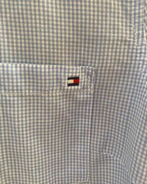 Linda camisa Tommy Hilfiger de manga larga color azul a cuadros lista para cualquier ocasión!