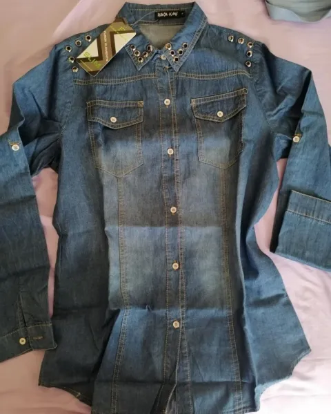 Mezclilla deslavada detalles con estoperol. 🍒Bonita camisa 🍒De dama F. U. R. O. R