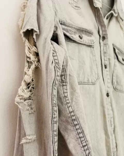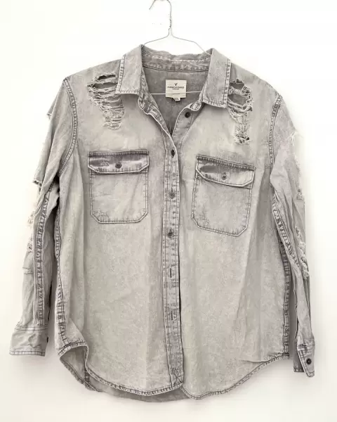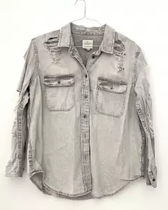 Overshirt con detalles desgastados. Camisa de mezclilla. Se puede usar cerrada o con un playerita abajo y abierta. Queda bien con todo!Los detalles de desgaste son parte del diseño.